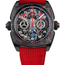 539.508.DDC.A Cyrus. The Cyrus Klepcys Dice Racing Black DLC 539.508.DDC.A is a captivating men's watch featuring a 42 mm black DLC grade 5 titanium and carbon fiber case, offering a blend of strength and contemporary design. The watch comes with a striking red Cordura strap and an additional customized black caoutchouc rubber strap for added versatility. The black matt carbon fiber bezel enhances the sporty and dynamic appeal of the timepiece. Anti-reflective sapphire crystal glass on both the dial and case back ensures durability and clear visibility of the intricate details. The dial showcases a 3D open-worked design, with Arabic hour numerals on an anti-reflective sapphire crystal ring filled with white SuperLuminova that emits a blue glow, making it easy to read in various lighting conditions. Functionalities of this timepiece include central hours and minutes, a small seconds sub-dial at 9 o'clock, a 30-minute counter for the double independent chronograph at 3 o'clock with double hands in red and blue, and two central chronograph hands. The red hand resets to zero at 12 o'clock, while the blue hand resets at 6 o'clock, adding to the dynamic appeal of the watch. Powering this exceptional timepiece is an in-house manufactured self-winding movement, calibre CYR718, offering a robust 60-hour power reserve, ensuring reliable and accurate timekeeping over an extended period.