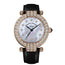 Round Case. 18k Rose Gold. Hand polished. Water resistant up to 30 meters. Diameter: 39 mm x Thickness: 9.6 mm. Sapphire crystal. Hand set with 102 brilliant-cut diamonds (3,91 carats) Hours, Minutes, Seconds Winding shaft with 2 positions: 1.Winding. 2.Time setting MVT FM 2800-SCGR. Self-winding movement with bidirectional rotor system. Power reserve of 42 hours. 165 Components. 21 Jewels Diameter:. 26.20 mm. Thickness : 3.75 mm. Balance wheel frequency set at 28,800 alternations per hour Engraving on the bridges, the plate and the rotor. Brushing on the bridges and the rotor. Circular brushing on the plate. Chamfering on the main plate. Diamond polishing on the sinks and the bridges' bevels. Sunray brushing on the bridges, the rotor's segment, the rolling and the barrel's cover. Circular graining on the wheels. Snailling on the ratchets Hand sewn alligator strap 18k Rose Gol