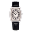 Preowned-5850 Franck Muller  This watch comes with 31 * 36 mm 18K White Gold case. Fixed 18K White Gold bezel. Silvery guilloché dial. Black Arabic numerals.Minute markers in the form of railway tracks around. Black hour hands. The watch performs following functions: hours, minutes. Self-winding mechanical movement is powered by a ?alibre FM 800. Power reserve approximately 42 hours. Case back is solid. Sapphire crystal protects front side of the watch. Black leather strap with white gold clasp buckle. This model is water-resistant up to 30 m.