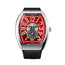 Vanguard Case. Stainless Steel. Hand polished. Water resistant up to 30 meters. Width: 41 mm x Length: 51.9 mm x Thickness: 8.15 mm. Red inserts on both sides of the case. Sapphire crystal. Open back with the Colorado Grand Logo on the crystal Hours, Minutes, Seconds, Date at 6 o'clock Winding shaft with 2 positions : 1. Winding. 2.Time setting MVT FM 708. Self-winding movement. Power reserve of 38 hours. 136 Components. 26 Jewels. Diameter : 28.90 mm. Thickness : 3.85 mm. Balance wheel frequency set at 21'600 alternations per hour Cotes de Geneve and brushing ''soleil papier'' on the bridges and the rotor. Circular graining on the two sides of the main plate. Chamfering of the bridges. 24k Gold bath and rhodium plating of the components. 24k Gold finish on the written engravings. Circular brushing of the rotor ball bearing. Brushing ''soleil papier'' on the barrel. Polishin