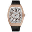 Vanguard Case. 18k Rose Gold. Hand polished. Water resistant up to 30 meters. Black inserts on both sides of the case. Sapphire crystal. Hand set with 299 brilliant-cut diamonds (3.83 carats) Uncoordinated jumping hours, Minutes, Seconds Winding shaft with 2 positions: 1.Marche. 2.Time setting MVD FM 2038-CH. Self-winding movement with bidirectional rotor system. Power reserve of 40 hours. 199 Components. 23 Jewels. Width: 24.80 mm. Length: 36.20 mm. Thickness: 5.40 mm. Balance wheel frequency set at 28,800 alternations per hour Cotes de Geneve on the bridges, the rotor and the additional plate. Circular graining on the main plate. Chamfering on the plate. Diamond polishing on the sinks and the bridges. Snailling on the ratchets. Sunday brushing on the rolling, the rotor's segment and the barrel's cover Hand sewn alligator strap 18k Rose Gold buckle. Hand set with 12 brilliant-cut diamond.