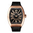 Vanguard Case. 18k Rose Gold. Hand polished. Water resistant up to 30 meters. Width: 41 mm x Length: 49.95 mm x Thickness: 12.2 mm. Black inserts on both sides of the case. Sapphire crystal Hours, Minutes Winding shaft with 2 positions: 1.Winding. 2.Time setting MVT FM 2250-V. Self-winding movement with bidirectional rotor system. Power reserve of 60 hours. 230 Components. 39 Jewels Diameter:. 28.20 mm. Thickness: 2.60 mm. Balance wheel frequency set at 18,000 alternations per hour Engraving of the bridges and the plate. Cotes de Geneve of the bridges. Mirror-polishing of the sinks. Diamond-polishing of the rubies' recess and the bridges. ''Soleillage'' of the bridges and the barrel's cover. Circular-graining of the wheels. Circular-graining of the plate Hand sewn alligator strap 18k Rose Gold buckle. Hand polished Brushed finish. Applique numerals meticulously painted a