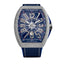 Vanguard Case. Stainless Steel. Hand polished. Water resistant up to 30 meters. Rhodium plating. Width: 41 mm x Length: 49.95 mm x Thickness: 12.2 mm. Blue inserts on both sides of the case. Sapphire crystal Hours, Minutes, Seconds, Date at 6 o'clock Winding shaft with 3 positions: 1.Winding. 2.Date setting 3.Time setting MVT FM 800-DT. Self-winding movement with bidirectional rotor system. Power reserve of 42 hours. 165 Components. 21 Jewels. Diameter: 25.60 mm. Thickness: 3.75 mm. Balance wheel frequency set at 28,800 alternations per hour Cotes de Geneve and brushing soleil papier on the bridges and the rotor. Circular graining on the two sides of the main plate . Chamfering of the bridges. 24k Gold bath and Rhodium plating of the components. 24k Gold finish on the written engravings. Circular brushing of the rotor ball bearing. Brushing soleil papier on the barrel Polishing