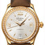 1-39-22-04-11-44 Glashutte Original The Glashutte Original Lady Serenade 1-39-22-04-11-44 is a luxurious and elegant women's watch. It features a 36 mm case made of polished rose gold, with a fixed bezel adorned with brilliant-cut diamonds. The crown of the watch also features a brilliant-cut diamond, adding to its exquisite design. The galvanic silver dial of the watch has a delicate sunray finish and is adorned with a printed minute scale, gold-plated applied indexes and Roman numerals, as well as rose gold hands. The date function is located at the 6 o'clock position, and the watch is signed at the 12 o'clock position. This timepiece is powered by a self-winding mechanical movement, specifically the Calibre 39-22, which offers a power reserve of approximately 40 hours. The case has a thickness of 10.2 mm, and the transparent case back allows a view of the intricate movement inside. Both the front and back sides of the watch are protected by sapphire crystal, ensuring durability and scratch resistance. The watch offers essential functions, including hours, minutes, seconds, and date display. It is paired with a brown calfskin strap featuring a clasp buckle, providing both comfort and a secure fit. Additionally, the watch boasts water resistance up to 50 meters, offering protection from splashes and light water exposure. In summary, the Glashutte Original Lady Serenade 1-39-22-04-11-44 is a refined timepiece that combines luxurious design elements, such as the rose gold case and diamond accents, with sophisticated mechanical craftsmanship. Its elegant dial and the brown calfskin strap complement its overall aesthetic, making it a versatile choice for various occasions. The water resistance adds practicality, making it suitable for everyday wear.
