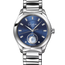 "Radiant Blue" with sunray dial and appliques with 20 brilliant-cut diamonds (total approx. 0.052 ct. TW vvs). Stainless steel leaf-shaped hour hands. Central second hand. Moon phase indicator is located at 6 o'clock position. This watch is powered by the self-winding Calibre 35-14 movement and boasts a power reserve of approximately 60 hours, ensuring precision and reliability.