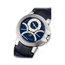 A sapphire crystal protects the front and back side of the watch. Blue alligator leather strap with white gold clasp. While the watch’s water-resistance up to 100 m ensures durability.