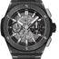451.CX.1170.CX Hublot. The Hublot Big Bang Integral 451.CX.1170.CX is a men's luxury watch with a black ceramic case and bracelet. The watch features a fixed black ceramic bezel and a skeleton dial with luminous silver-tone hands and index hour markers. The Arabic numeral minute markers are displayed at 5-minute intervals, and minute markers are displayed around the outer rim. The watch has analog display with luminescent hands and markers. This watch has a chronograph function with two sub-dials displaying 60-second and 60-minute measurements. It also has a date display located at the 3 o'clock position. The watch is powered by a Hublot calibre HUB1280 automatic movement, composed of 354 parts and 43 jewels, which beats at a frequency of 28,800 vibrations per hour and has a power reserve of approximately 72 hours. The watch's sapphire crystal is scratch-resistant, and it has a transparent case back. The case is round and measures 42mm in diameter and 14.5mm in thickness. The watch has a fold-over clasp with a push-button release and is water-resistant up to 100 meters (330 feet). Overall, the Hublot Big Bang Integral 451.CX.1170.CX is a high-quality luxury watch with a sleek and stylish design, making it a great choice for those looking for a premium timepiece with advanced features.