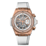 441.OE.2011.RW.1104 Hublot. The Hublot Big Bang Unico 441.OE.2011.RW.1104 is an elegant timepiece with a 42 mm case made of satin-finished and polished 18K King Gold, a special alloy of gold with high resistance to scratches and wear. The case is adorned with 126 diamonds, weighing around 1.1 carats, set in a satin-finished and polished 18K King Gold bezel with six H-shaped titanium screws. The watch has a striking matte white skeleton dial, which allows the wearer to see the inner workings of the watch. The dial has gold hands and index hour markers, adding a touch of luxury to the watch. The watch features a white structured lined rubber strap with an 18K King Gold and titanium deployant buckle clasp, which provides a comfortable and secure fit on the wrist. The movement of the watch is powered by the HUB1280 UNICO Manufacture, a self-winding chronograph with a flyback function and a column wheel. The movement has a power reserve of 72 hours and offers the following functions: chronograph, date, hour, minute, and seconds. The watch is water-resistant up to 100 meters or 330 feet, making it suitable for swimming and snorkeling. Overall, the Hublot Big Bang Unico 441.OE.2011.RW.1104 is a beautiful timepiece that combines style, performance, and luxury. The white skeleton dial and white rubber strap make it a perfect watch for summer or any occasion that calls for a fresh and elegant look.