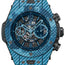 Preowned - 411.YL.5190.NR.ITI16  Hublot  The Hublot Big Bang Unico Italia Independent Chronograph 411.YL.5190.NR.ITI16 is a striking timepiece that showcases innovation and style. This watch features a 45 mm Carbon case, reflecting a perfect fusion of robustness and contemporary design. The carbon fixed bezel, secured with 6 titanium H-shaped screws, perfectly complements the skeleton dial. Blue skeleton luminous hour hands and Arabic numerals, along with hour markers with blue luminous coating, add a modern and bold touch to the design. Arabic numerals grace the positions of 2, 4, 6, 8, 10, and 12 o’clock. A central second hand enhances the functionality. This timepiece offers essential functions of hours, minutes, seconds, date, and chronograph, catering to the needs of the modern wearer. The self-winding mechanical movement, Calibre HUB Unico 1242, provides precise timekeeping and a remarkable power reserve of approximately 72 hours. With a transparent case back, enthusiasts can admire the intricate movement within, protected by scratch-resistant sapphire crystal on both the front and back. The blue techno fiber and rubber strap, secured with a folding clasp, complete the overall aesthetic. With a remarkable water resistance of up to 100 meters, the Hublot Big Bang Unico Italia Independent Chronograph 411.YL.5190.NR.ITI16 is ready for various occasions, reflecting a blend of cutting-edge technology and contemporary design.