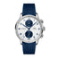 The Portugieser Chronograph is one of IWC Schaffhausen’s most iconic models. With its compact diameter of 41 millimetres, it fits almost any wrist. However, the thin bezel gives the impression of wearing a significantly larger timepiece. The clear, functional dial boasts applied Arabic numerals and slender Feuille hands. Printed with a quarter-second scale, the inner réhaut not only allows precise reading of the stop time but also reminds us of the Portugieser’s origins as a nautical precision instrument for the wrist. This model features a stainless steel case, a white lacquered dial with blue sub-dials, it is fitted with a black alligator leather strap. Inside the sporty-elegant chronograph, the IWC-manufactured 69355 calibre is at work. The robust and precise chronograph movement in classic column-wheel design is visible through a sapphire-glass case back.