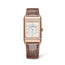 Q2572570 Jaeger Lecoultre The Jaeger-Lecoultre Reverso Classic Duetto Rose Gold & Diamonds Q2572570 is a luxurious and sophisticated timepiece that showcases the brand's iconic reversible case design along with elegant details and functional features. The watch boasts a 40 x 24.4 mm rose gold case that exudes a warm and rich aesthetic. The rose gold fixed bezel is adorned with 60 brilliant round-cut diamonds, weighing a total of 0.85 carats. This diamond-set bezel adds a touch of glamour and sparkle to the watch, making it a true statement piece. One of the unique features of the Reverso Classic Duetto is its reversible case. The rectangular case design allows you to flip the watch to reveal a second dial on the back, making it perfect for switching between day and night looks. The front dial features a silver opal surface with applied Arabic numerals and a double set of sword hands, adding to the watch's classic and elegant appeal. On the back dial, you'll find a black lacquered surface with Dauphin hands. The watch performs the essential functions of indicating the hour and minute, making it a versatile choice for daily wear. The automatic winding movement Calibre 968A powers the watch and is equipped with 30 jewels and 207 components. With a power reserve of approximately 38 hours, you can trust that the watch will keep accurate time without needing frequent winding. The case thickness of 9.5 mm adds to the watch's slim and elegant profile, making it comfortable to wear on the wrist. The case back is solid, offering protection to the inner movement. The sapphire crystal on the front side of the watch ensures clarity and durability, allowing you to admire the exquisite details of the dial and the diamond-set bezel. Completing the overall look is the alligator leather strap, which adds a touch of sophistication and comfort. The pin clasp buckle secures the strap in place while ensuring ease of wear. With a water resistance of up to 30 meters, the watch is suitable for everyday wear and can handle minor exposure to water. In summary, the Jaeger-Lecoultre Reverso Classic Duetto Rose Gold & Diamonds Q2572570 is a stunning and versatile timepiece that combines luxurious materials, elegant design, and practical functionality. Its reversible case, diamond-set bezel, and automatic movement make it a standout choice for those who appreciate fine craftsmanship and timeless elegance.