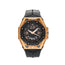 The Linde Werdelin Oktopus Moon Tattoo's sculpted form is a striking fusion of angles and layers, and is completely covered with the intricate hand etched tattooing on its solid 18Kt rose gold as a great octopus reaches its tentacles around all parts of the case from where it dwells on the black DLC titanium caseback.