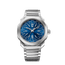 Octo Roma WorldTimer watch with mechanical manufacture movement, automatic winding, World Timer, 24 time zones and 24-hour indicator, hours, minutes and seconds, BVL257 caliber, 42-hour power reserve, 28,800 VpH (4Hz). 41 mm case (11.35 thick) in satin-brushed and polished stainless steel, blue sunburst dial and indicators, applied brushed rhodium-plated gold hour-markers, transparent caseback, screw-lock stainless steel crown set with ceramic inlay serving to set the time as well as the cities indication, bracelet in satin-brushed and polished stainless steel with triple-blade folding clasp. Water-resistant up to 100 meters.