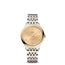 A timeless collection since 1994, the OMEGA De Ville Prestige is now in its third generation. Continuing to represent classical design and refined elegance, the timepieces offer a range of patterns, finishes and colours to suit different lifestyles and personalities. In this 34 mm stainless steel - 18K yellow gold model, the PVD Moonshine Gold dial features a sun-brushed finish. The display is distinguished by yellow gold-plated hands, as well as alternating Roman numerals and cabochon indexes. The pure look of the timepiece is completed by a date window at 6 o'clock, and a dotted minute track on the outer zone. This Master Chronometer certified watch is presented on a stainless steel - yellow gold bracelet and is driven by the OMEGA Master Co-Axial Calibre 8800, which can be admired through the scratch-resistant sapphire crystal caseback. 3 bar (30 metres / 100 feet)