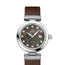 A sapphire crystal protects the front and back side of the watch. Grey leather strap with folding clasp. While the watch’s water-resistance up to 100 m ensures durability.
