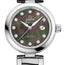 The attractive dial is made with Tahiti mother-of-pearl, to accentuate the feminine touch. The polished alpha-shaped hands have been crafted with white gold, along with 11 indexes, which are set with diamonds. Central second hand. The date window is located at the 3 o'clock position.