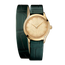 A sapphire crystal protects the front side of the watch. Green alligator leather strap with pin buckle. While the watch’s water-resistance up to 30 m ensures durability.