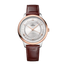 A sapphire crystal protects the front and back side of the watch. Brown alligator leather strap strap with pin buckle. While the watch’s water-resistance up to 30 m ensures durability.