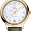 A sapphire crystal protects the front and back side of the watch. Green alligator leather strap with steel buckle. While the watch’s water-resistance up to 30 m ensures durability.