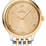 The PVD Moonshine™ Gold dial features a stamped random vertical pattern in a sun-brushed finish. The display is distinguished by yellow gold-plated hands, as well as alternating Roman numerals and cabochon indexes.