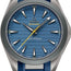 For the blue anodized dial, OMEGA has used grade 5 titanium that has been sandblasted and has included an engraved horizontal stripe pattern. Along with blackened indexes and hour and minute hands with Super-LumiNova, there is also a yellow lacquered 3D laser-cut cylindrical central seconds hand.Blue inner bezel with minute scale.