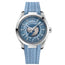 The dial is sun-brushed in OMEGA’s own Summer Blue with a gradient finish to reflect the watch’s level of water resistance and includes vertical teak stripes and rhodium-plated hands and indexes filled with a unique light blue Super-LumiNova.