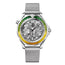 - Unidirectional rotating bezel set with pavé cut diamonds in green