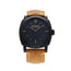 This Panerai Radiomir 1940 is crafted in a black ceramic case measuring 48mm with a DLC titanium caseback. The black dial is totally refined to represent the entirety of the watch — simple, clean, and functional. The subtle markers in dot and bar style are also coated with Super-LumiNova for optimum visibility. The Radiomir uses brown scamosciato with a trapezoidal buckle made of black DLC-coated titanium that perfectly blends with its dark look.