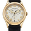 Preowned-5035J-001 Patek Philippe  This watch comes with 37 mm 18K Yellow Gold case. Fixed 18K Yellow Gold bezel. Ivory white dial. Gold applied Roman numeral hour markers. Yellow gold hour hands with luminous coating. Central second hand. Minute markers in the form of railway tracks around the outer rim. The date window is located at the 6 o'clock position. This watch has three chronograph sub-dials at 2 ,6 and 10 o'clock. Month display at 3 o'clock, 24 hour am/pm display at 6 o'clock, day display at 9 o'clock. The watch performs following functions: hours, minutes, seconds,date, annual calendar. Self-winding mechanical movement is powered by a ?alibre 315. Power reserve approximately 40 hours. Case Thickness - 11 mm. Case back is transparent. Sapphire crystal protects front and back side of the watch. Black alligator leather strap with folding clasp buckle. This model is water-resistant up to 25 m.