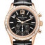 5961R-010 Patek Philippe. The Patek Philippe Complications Annual Calendar Chronograph 5961R-010 is a luxurious watch with an impressive set of features. The watch is powered by a mechanical self-winding movement Caliber CH 28-520 IRM QA 24H, which is known for its accuracy and reliability. It has a chronograph function with a 60-minute and 12-hour monocounter, allowing you to measure elapsed time with ease. The watch also has an annual calendar, which displays the day, date, and month in apertures. This means that the watch only needs to be manually adjusted once a year, at the end of February. There is also a power reserve and day/night indication, which helps you keep track of when the watch needs to be wound. The dial is an ebony black opaline with 8 baguette diamond hour markers (~0.23 ct), which adds to the watch's elegance. The bezel is set with 36 baguette diamonds (~3.48 ct), and the fold-over clasp is set with 22 baguette diamonds (~0.97 ct). The alligator strap with square scales is hand-stitched and matte black, which complements the rose gold case that has a diameter of 40.5 mm. Overall, the Patek Philippe Complications Annual Calendar Chronograph 5961R-010 is a high-end watch with a beautiful design and a range of impressive features.