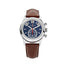 This Patek Philippe Complications Annual Calendar Flyback Chronograph is crafted in a white gold case measuring 40.5mm. The blue dial features annual calendar, chronograph, 60-minute and 12-hour mono counter, and apertures for day, date and month. The watch comes on a brown leather strap.