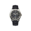 This Patek Philippe Annual Calendar Complications is crafted in a platinum case measuring 39mm in diameter. The grey dial features a moon phase, month, day and date window with luminous hands and hour markers. The watch comes on a black leather strap.