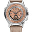 5935A Patek Philippe The Patek Philippe Complications Chronograph World Time 5935A is a remarkable timepiece encased in a 41 mm stainless steel case with a fixed stainless steel bezel. Its rose-gilt opaline dial features a hand-guilloched "carbon" motif at the center, enhancing the visual appeal. Arabic numerals and charcoal gray gold applied hour markers, luminescent coated charcoal gray gold hour hands, and a day/night indication contribute to excellent legibility and style. This watch boasts a World Time mechanism, allowing easy display of local time and the time in any of the world’s 24 time zones through a proprietary design with just one time-zone selector. The chronograph hand, operating with minimal-friction vertical clutch, can also serve as a permanently running second hand. The movement, finished in adherence to Patek Philippe Seal directives, includes groundbreaking innovations like the patented Spiromax® balance spring, enhancing isochronism. The 30-minute counter is positioned at the 6 o'clock position. The timepiece offers an array of functions, including hours, minutes, city disk, 24-hour disk (day/night indication in colors and sun/moon symbols), world time, flyback chronograph, and central chronograph hand. The self-winding mechanical movement, Calibre CH 28?520 HU, provides a power reserve of approximately 55 hours. With a case thickness of 12.86 mm, the watch strikes a balance between elegance and substance. The transparent case back and sapphire crystal protecting the front and back sides allow for a captivating view of the intricate movement. The beige calfskin leather strap with a fold-over clasp adds to the overall aesthetics and comfort. With a water resistance of up to 30 meters, the Patek Philippe Complications Chronograph World Time 5935A stands as a testament to horological innovation and craftsmanship.