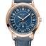 5224R Patek Philippe The Patek Philippe Complications Dual Time Zone 5224R is a timepiece that effortlessly combines sophistication and functionality. Encased in a 42 mm 18K rose gold case with a fixed 18K rose gold bezel, this watch exudes an aura of luxury. The blue dial features gold applied Arabic numerals, hour markers, and cabochons, all adorned with white luminescent coating, ensuring excellent readability in any lighting condition. The minute markers, designed like railway tracks around the outer rim, add a distinctive touch. Luminous hour hands further enhance the dial's legibility, while a sub-dial for small seconds graces the 6 o'clock position. The watch offers an array of functions, including hours, minutes, seconds, a dual time zone, and a 24-hour display, catering to the needs of a modern globetrotter. The self-winding mechanical movement is powered by the prestigious Calibre 31?260 PS FUS 24H, ensuring a commendable power reserve of approximately 48 hours. With a case thickness of 9.85 mm, the watch strikes a harmonious balance between form and function. The transparent case back, along with the sapphire crystal protecting the front and back sides, allows for a captivating view of the intricate movement within. The navy blue calfskin leather strap with a prong buckle completes the ensemble, offering both luxury and comfort. With a water resistance of up to 30 meters, the Patek Philippe Complications Dual Time Zone 5224R is a versatile and sophisticated companion for various occasions, epitomizing Patek Philippe's dedication to horological excellence.