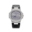 The Patek Philippe Nautilus 5712G-001 is designed in a 40mm 18k white gold case, styled on a leather strap. The slate gray dial hosts three sub-dials: a power reserve indicator, seconds hand, and Moon Phase timekeeping capabilities. A subtle and simple sports watch with high-end complications.