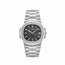 This Patek Philippe Nautilus watch keeps the same basic design appeal as the "Jumbo Nautilus" but with a 42mm, slightly thicker case. Beneath the white gold case and the black ribbed dial is the automatic Caliber 315 sealed with a sapphire-crystal case back.