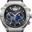 - Black dial with blue three sub-dials