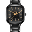 The True Square has a diameter of 29 mm and consists of a polished black high-tech ceramic case and crown and a flat sapphire crystal. Thanks to a Rado R079 quartz movement, the watch keeps precise and reliable time. The rose gold coloured hands and indexes with white Super-LumiNova® match perfectly with the dial that includes a black radially pleated stamped structure. The watch has a water resistance of 5 bar. The pleasant wearing comfort of the True Square is ensured by a black polished high-tech ceramic bracelet with a titanium 3-fold clasp.