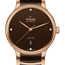 The classic Centrix Automatic Diamonds watch has been reworked not only technically, but also aesthetically. The modified model has a rounded sapphire crystal that extends all the way to the edge, as well as a curved case blending with the curved crystal edge. The overall appearance of this iconic timepiece is completed with adjusted case lugs and a bracelet made of polished rose-gold-coloured PVD-coated stainless steel with brown high-tech ceramic middle links. The brown lacquered dial with 4 diamonds, emphasised with the printed “jubilé” logo, matches perfectly with the rose-gold-coloured hands. Inside, the three-hand calibre R763 movement exceeds standard accuracy test requirements from 3 to 5 positions, thanks to its antimagnetic Nivachron™ hairspring for increased reliability and accuracy. The watch is water resistant down to 50 m and offers 80 hours of power reserve.