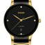 The Classic Centrix Quartz Diamonds watch has been reworked not only technically, but also aesthetically. The modified model has a rounded sapphire crystal that extends all the way to the edge, as well as a curved case blending with the curved crystal edge. The overall appearance of this iconic timepiece is completed with adjusted case lugs and a bracelet made of polished yellow gold-coloured PVD-coated stainless steel with black high-tech ceramic middle links. The black lacquered dial with 4 diamonds, emphasised with the printed “jubilé” logo, matches perfectly with the yellow gold-coloured hands. Thanks to the PreciDrive and HeavyDrive features in the calibre R073 quartz movement, the watch has greater accuracy and resistance to shocks. The watch is water-resistant down to 50 m.