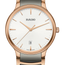 The Classic Centrix Quartz has been reworked not only technically, but also aesthetically. The modified model has a rounded sapphire crystal that extends all the way to the edge and a curved case blending with the curved crystal edge. The overall appearance of this iconic timepiece is completed with adjusted case lugs and a bracelet made of polished rose gold-coloured PVD-coated stainless steel with plasma high-tech ceramic middle links. The silver sunray dial with rose gold-coloured applied indexes matches perfectly with the rose gold-coloured hands. Thanks to the PreciDrive and HeavyDrive features in the calibre R073 quartz movement, the watch has greater accuracy and resistance to shocks. The watch is water-resistant down to 50 m.