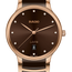 The Classic Centrix Quartz Diamonds watch has been reworked not only technically, but also aesthetically. The modified model has a rounded sapphire crystal that extends all the way to the edge and a curved case blending with the curved crystal edge. The overall appearance of this iconic timepiece is completed with adjusted case lugs and a bracelet made of polished rose gold-coloured PVD-coated stainless steel with brown high-tech ceramic middle links. The brown sunray dial with 12 diamonds, emphasised with the printed “jubilé” logo, matches perfectly with the rose gold-coloured hands. Thanks to the PreciDrive and HeavyDrive features in the calibre R073 quartz movement, the watch has greater accuracy and resistance to shocks. The watch is water-resistant down to 50 m.