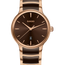 The Classic Centrix Quartz has been reworked not only technically, but also aesthetically. The modified model has a rounded sapphire crystal that extends all the way to the edge and a curved case blending with the curved crystal edge. The overall appearance of this iconic timepiece is completed with adjusted case lugs and a bracelet made of polished rose gold-coloured PVD-coated stainless steel with brown high-tech ceramic middle links. The brown sunray dial with rose gold-coloured applied indexes matches perfectly with the rose gold-coloured hands. Thanks to the PreciDrive and HeavyDrive features in the calibre R079 quartz movement, the watch has greater accuracy and resistance to shocks. The watch is water-resistant down to 50 m.