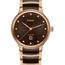 The Classic Centrix Quartz Diamonds watch has been reworked not only technically, but also aesthetically. The modified model has a rounded sapphire crystal that extends all the way to the edge and a curved case blending with the curved crystal edge. The overall appearance of this iconic timepiece is completed with adjusted case lugs and a bracelet made of polished rose gold-coloured PVD-coated stainless steel with brown high-tech ceramic middle links. The brown facetted dial with 12 diamonds has an opulent effect created by stamping a shaped dial and then filling it with lacquer. Thanks to the PreciDrive and HeavyDrive features in the calibre R079 quartz movement, the watch has greater accuracy and resistance to shocks. The watch is water-resistant down to 50 m.