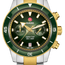 Embark on a journey of style with the Rado Captain Cook Automatic Chronograph watch. Equipped with the automatic Rado calibre R801 movement, this watch delivers impeccable precision and reliability. With a 59-hour power reserve and an antimagnetic Nivachron™ hairspring, it ensures accurate timekeeping even in challenging environments. Adjusted in five positions, it surpasses expectations in terms of performance. The polished stainless steel case of 43 mm exudes a rugged elegance. The box-shaped sapphire crystal, with anti-reflective coating on both sides, offers exceptional durability and clarity. With a remarkable water resistance of 30 bar (300m), this watch is ready to accompany you on all your aquatic adventures. The dial boasts a captivating green to black gradient, reflecting the depth and allure of the ocean. The yellow gold-coloured applied indexes, enhanced with white Super-LumiNova®, ensure excellent legibility even in low-light conditions. To further enhance your experience, this timepiece comes with a special packaging that includes two additional straps: a green leather strap with polished yellow gold-coloured PVD and a green textile NATO style strap. With these options, you can effortlessly personalise your watch to match any occasion.