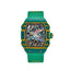 Richard Mille presents an innovative collection inspired by Van Nierkerk - the South African track and field Olympic record holder. The RM 67-02 is designed in a 38mm case crafted from Carbon TPT. The bezel is hand-painted with the bold colors of the South African Flag and fitted on a nylon green strap.