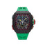 The RM 65-01 is typical Richard Mille in terms of style and material. Executing sportiness with techno-industrial movement finish, skeletonised dial, and multicoloured indicators. Based on the Vaucher VMF 6710, the RMAC4 inside the RM 65-01 is a high-frequency movement running at 36,000 beats per hour that has an integrated split-seconds chronograph, making it one of the most sophisticated movements in Richard Mille’s collection.