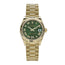 This Rolex Datejust 278278 is designed with a 31mm yellow gold, highlighted by a fluted bezel, and styled on a yellow gold president bracelet. The vibrant green dial hosts Roman numeral hour markers, gold hands and hosts a date display window. Whether you're out for a night on the town or heading to the office, this timepiece is a subtle and elegant choice that will surely be noticed.