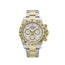 The Rolex Daytona 116503 is designed in 40mm two-toned 18k yellow gold and stainless steel with a white dial. Luminous hour markers and hands include a Chromalight display for optimal legibility. The bezel is engraved with a tachymetric scale and hosts the high-performance Chronograph. This grail can time a speed of up to 400 kilometers per hour and remains seen as the epitome of functionality meeting fashion.