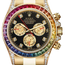 One year warranty on all watches. Preowned-116598 RBOW Rolex Daytona 116528 Custom Rainbow Chronograph 18K Yellow Gold & Diamonds & Sapphires Unisex Wath